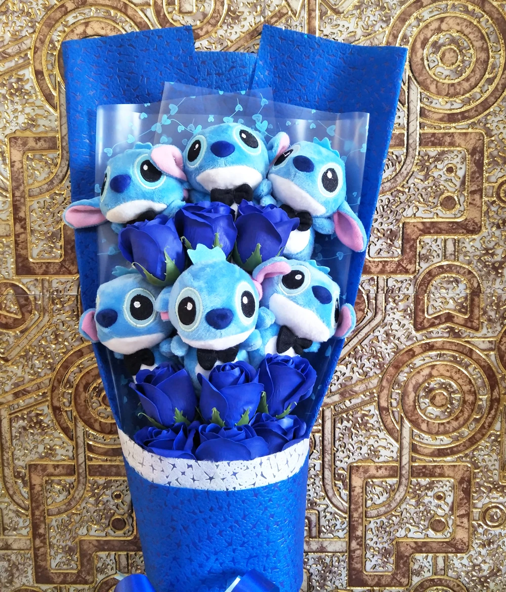 REVIEW TOP SELLER BOLAFYNIA stitch Plush Toys soap flower bouquet Soft Stuffed Dolls Plush bouquets For Valentine's D