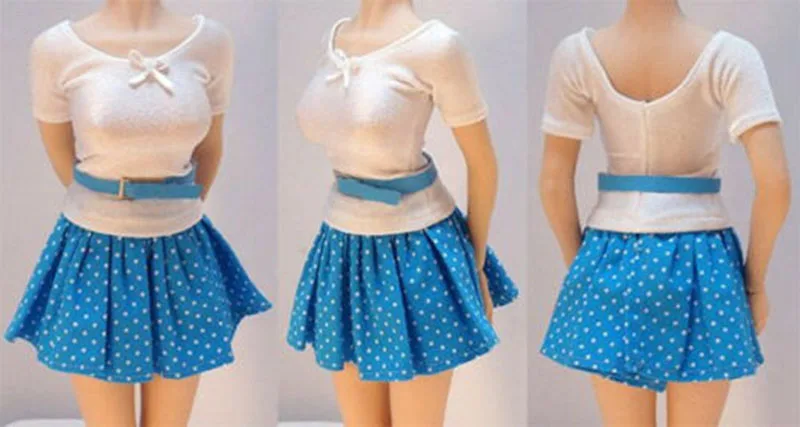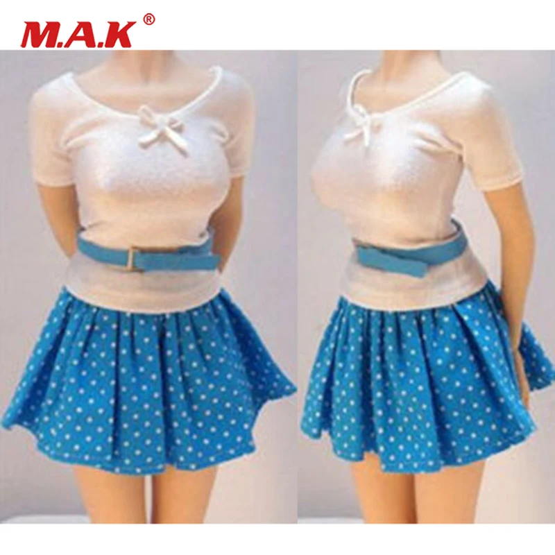 BEST QUALITY Custom 1/6 Scale Female Shirt&Blue Skirt Dress&Belt Clothes Set Fit For 12 inches PH Doll Body Figu