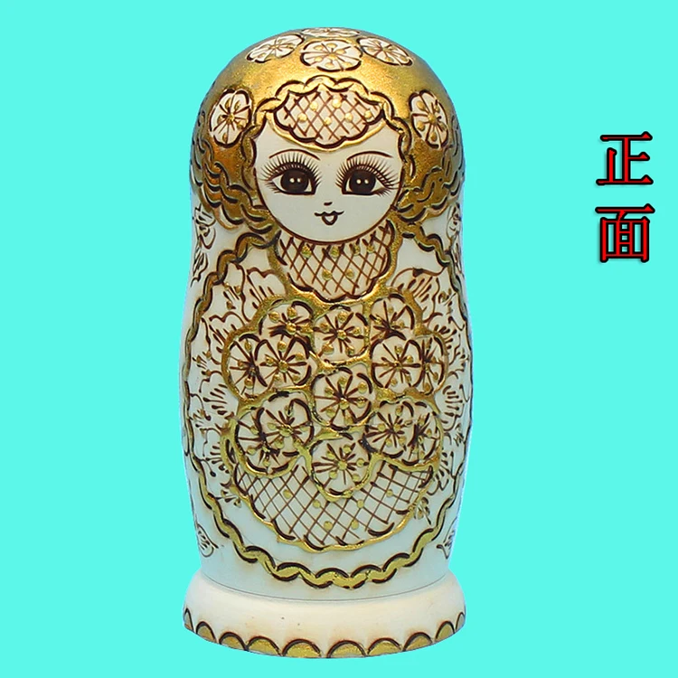 10pcs/set Wood Doll Russian Nesting Dolls Golden Matryoshka Dolls Creative Christmas Gifts Traditio