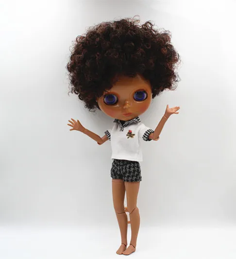 Blygirl Blyth doll Dark brown explosion curly nude doll black skin joint body 19 joint DIY doll can