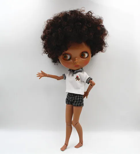 BEST QUALITY Blygirl Blyth doll Dark brown explosion curly nude doll black skin joint body 19 joint DIY doll can